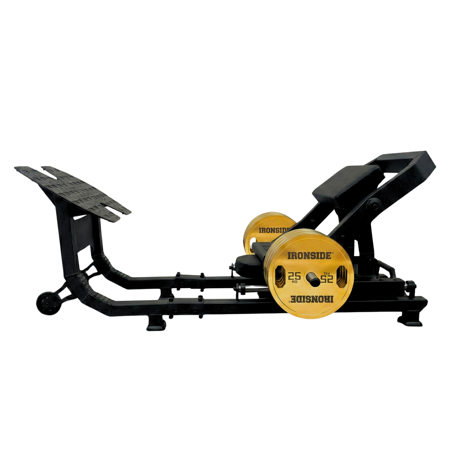 La Hip Thruster IRONSIDE Glute está diseñada para ofrecer una ejecución impecable del hip thrust, proporcionando estabilidad, control y un estímulo superior para el glúteo mayor. Su arquitectura combina una biomecánica precisa con una estructura de uso comercial, permitiendo trabajar con cargas elevadas sin comprometer la técnica, la comodidad o la seguridad del usuario. La plataforma elevada patentada, el asiento ajustable y el cinturón acolchado crean una configuración profesional que maximiza la activación muscular y asegura progresiones medibles incluso en programas de fuerza avanzada.