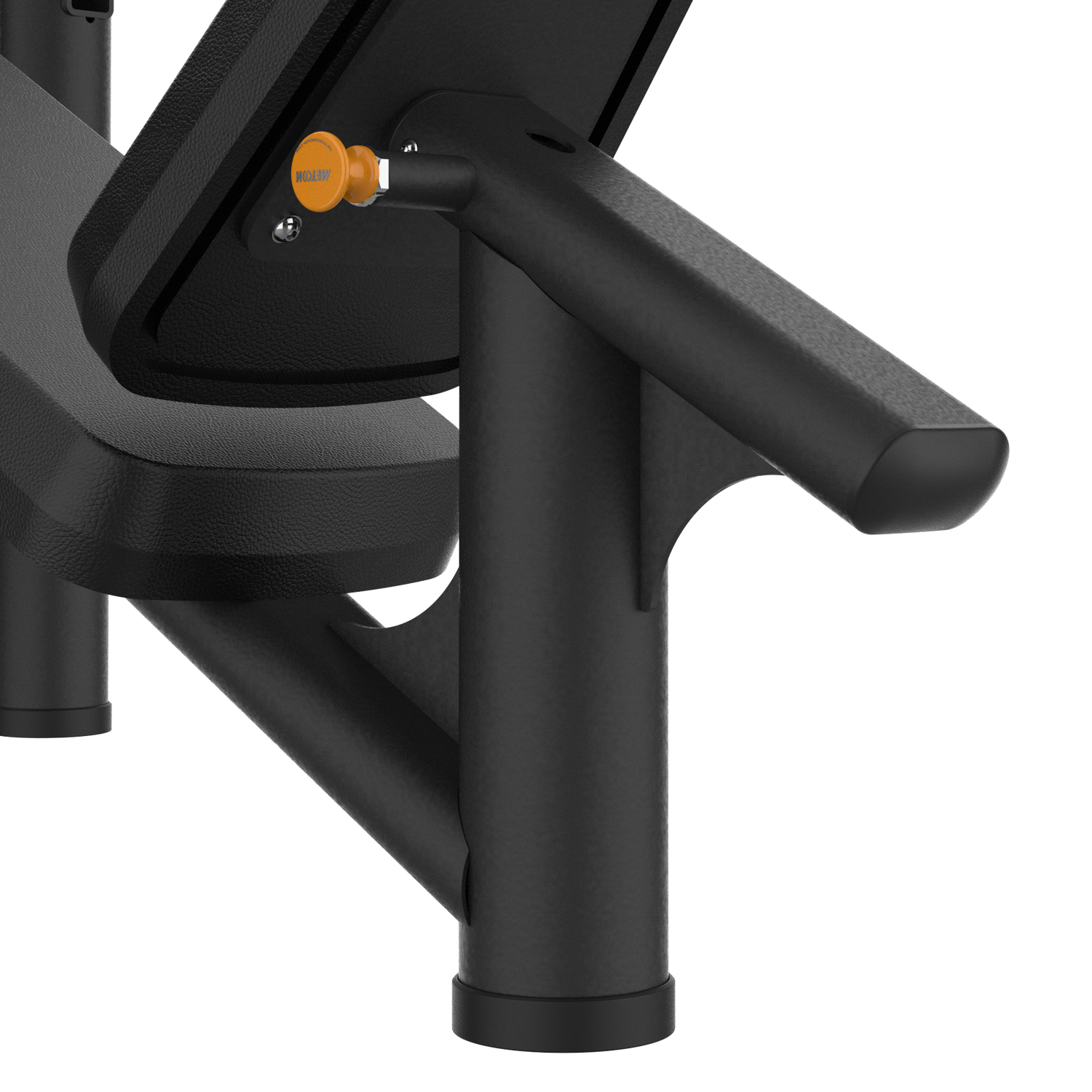 El sistema de regulación está diseñado para soportar cambios frecuentes sin deterioro, utilizando pernos reforzados y guías de acero resistentes al desgaste. Gracias a esto, la Press Banca Inclinada Olímpica IRONSIDE Luxe mantiene la misma precisión y comodidad incluso bajo un uso intensivo.