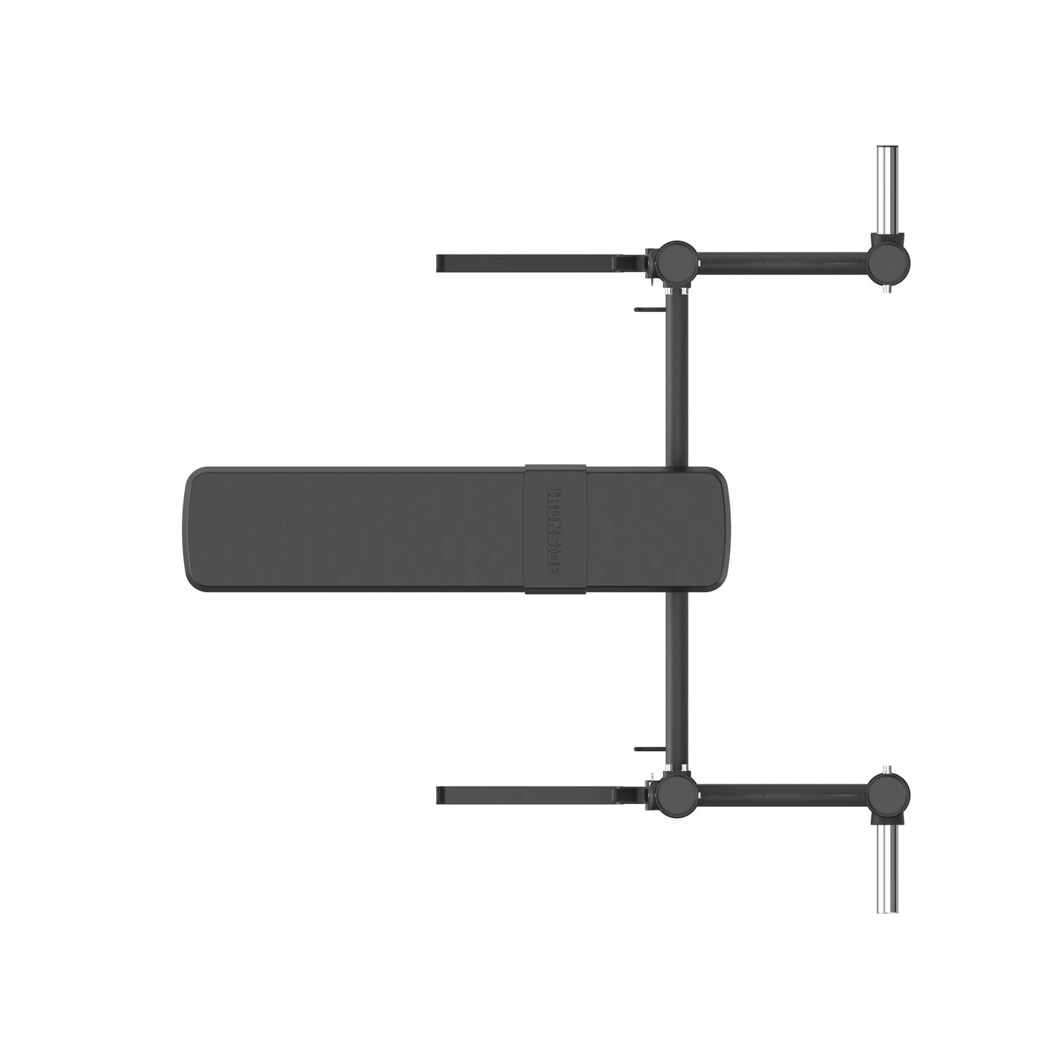 Uno de los diferenciales clave de la Press Banca Plana IRONSIDE Luxe es su sistema de ganchos cortos en dos alturas, que permite ajustar la posición de la barra según la longitud de brazos y los hábitos de levantamiento del usuario. Esta característica reduce la distancia inicial del despegue, lo que se traduce en un movimiento más natural y controlado.