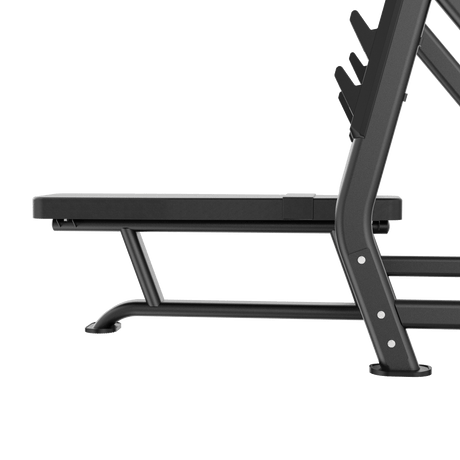 El Banco Plano IRONSIDE es la elección clásica para quienes buscan estabilidad y durabilidad en ejercicios de press de banca, fondos con mancuernas o remo con barra. Su diseño simple lo hace prácticamente indestructible, fácil de mover y muy estable bajo altas cargas. Ideal para gimnasios donde se requiere equipamiento de bajo mantenimiento y uso continuo.