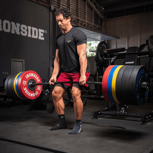 Los discos olímpicos IRONSIDE, especialmente los modelos Pro Bumper y de competición, están diseñados para soportar caídas desde alturas elevadas, ofreciendo un rebote controlado y una precisión de peso superior.