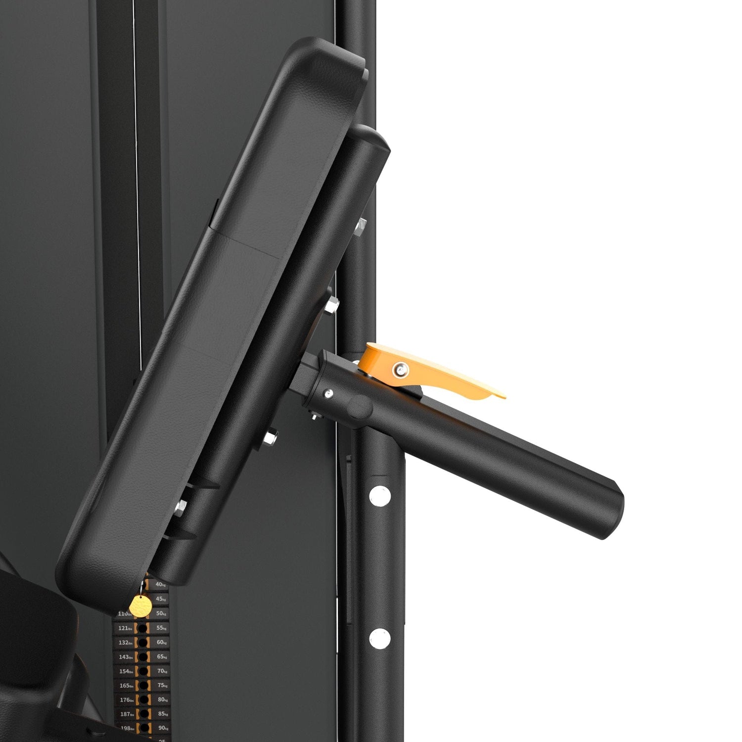 La resistencia provista por la pila selectorizada de 100 kg, ampliable a 125 kg, entrega el margen necesario para escalar de trabajos técnicos a bloques de fuerza sin cambiar de equipo. La curva de carga se percibe uniforme gracias al sistema de poleas de baja fricción, lo que facilita lecturas de RIR/RPE consistentes y decisiones claras al ajustar la carga entre sesiones. Para tareas correctivas o readaptación, el inicio suave del recorrido permite dosificar la intensidad y sostener tiempos bajo tensión altos sin comprometer la forma.