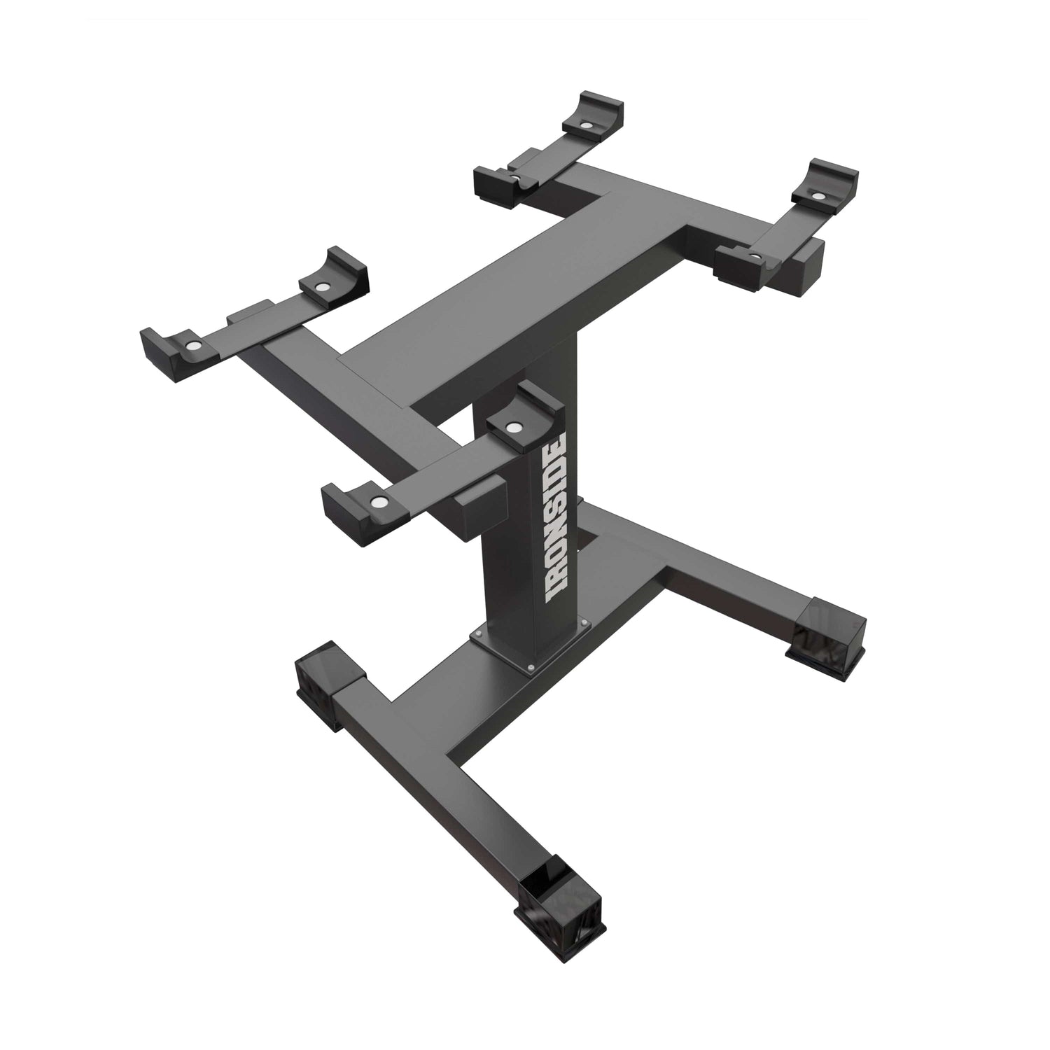 Diseñado específicamente para integrarse con las Mancuernas Ajustables IRONSIDE Block de 20 y 36 kg, el rack asegura una alineación perfecta y una superficie de apoyo estable para ambos modelos. Su plataforma metálica está calibrada para sostener el peso concentrado de cada mancuerna sin desplazamientos ni vibraciones.
