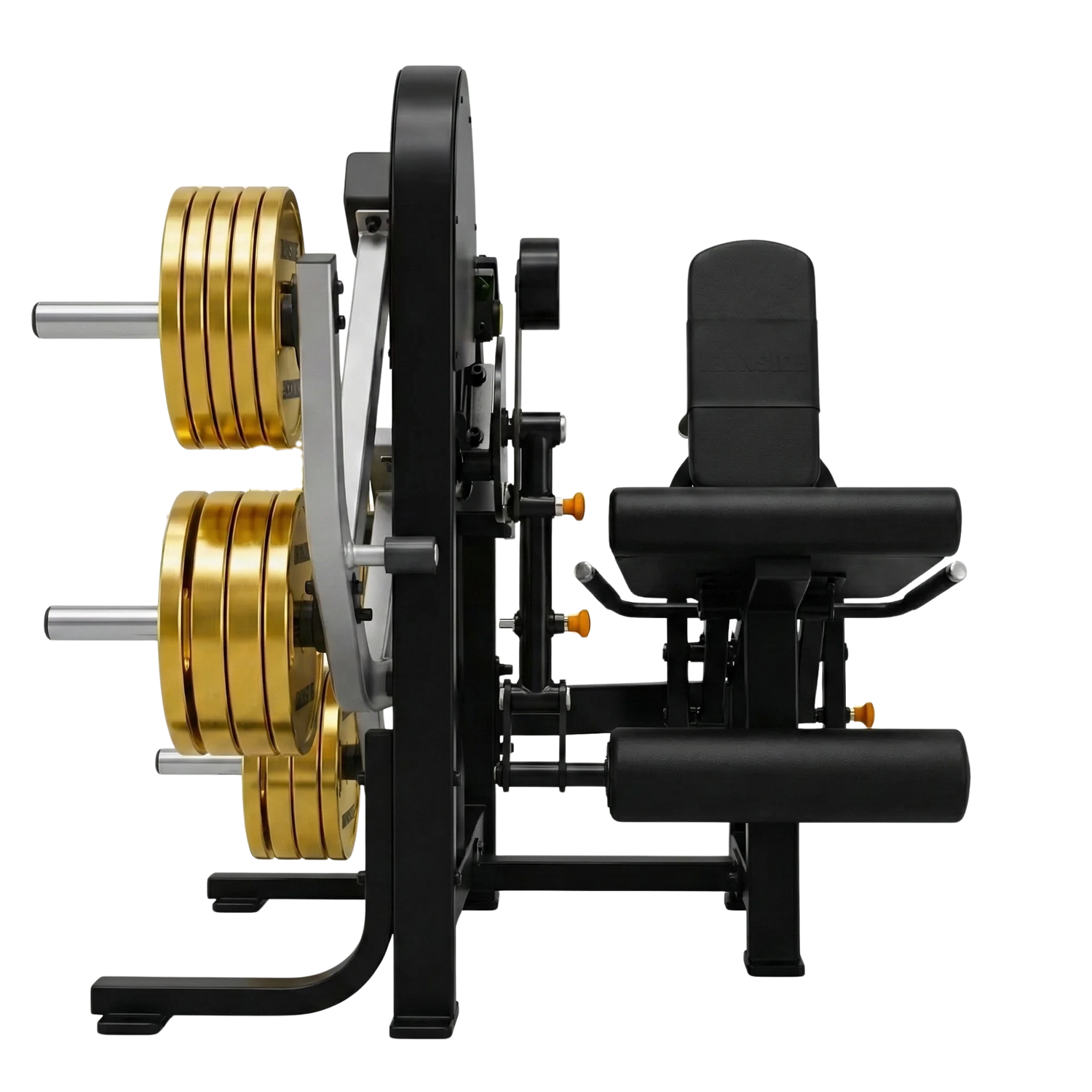 La Dual Leg Extension & Prone Leg Curl Plate Loaded IRONSIDE Premier combina dos patrones esenciales del entrenamiento de pierna en una sola estructura profesional: extensión de rodilla y curl femoral prono. Su sistema de cambio rápido permite alternar entre ejercicios con una sola palanca, manteniendo una mecánica estable, fluida y precisa, indispensable para rutinas de fuerza orientadas a hipertrofia, desempeño deportivo o rehabilitación progresiva. Su diseño robusto, orientado a gimnasios comerciales y estudios especializados, garantiza estabilidad aun bajo cargas altas.