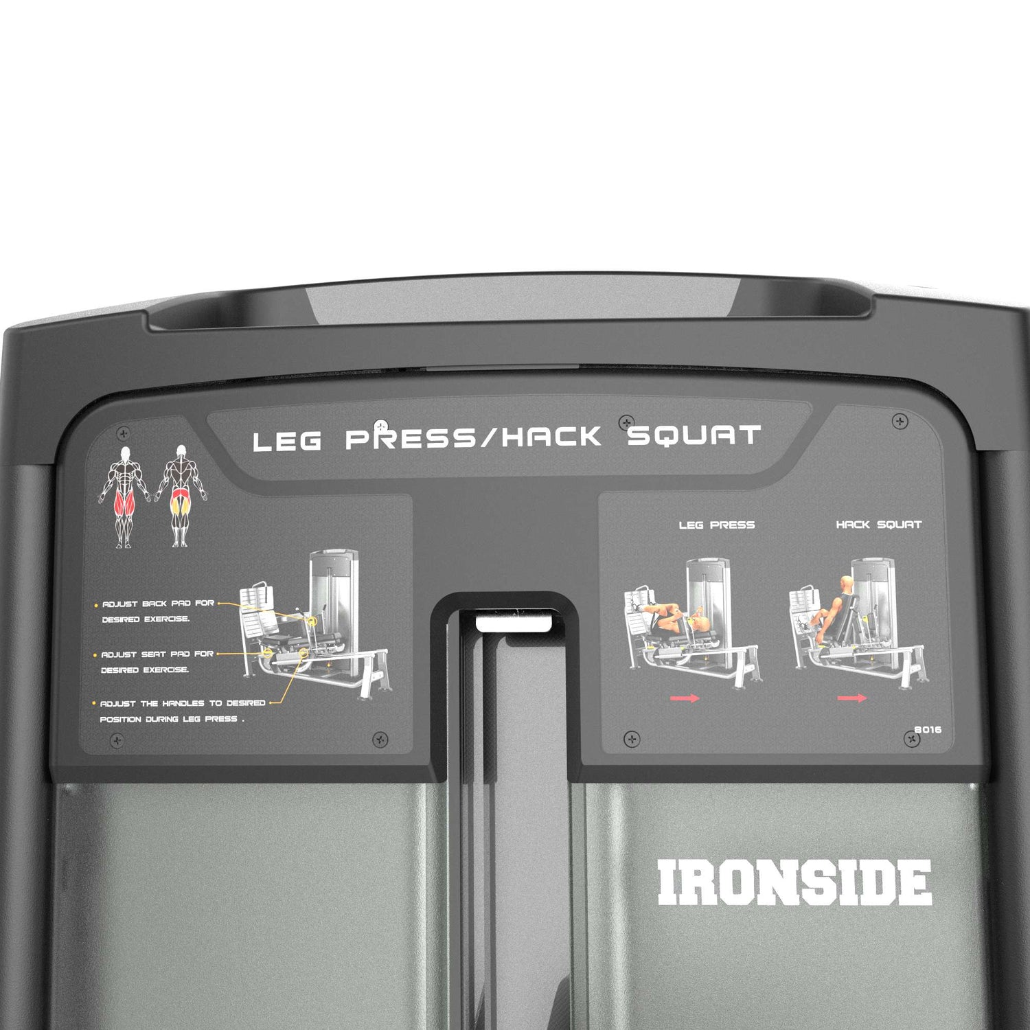 La Dual Horizontal Leg Press & Hack Squat IRONSIDE Luxe integra en un solo equipo la prensa horizontal sentada y el hack squat en posición supina, ofreciendo mecánica estable, rango profundo y control articular en cada repetición. Con 198,3 cm × 102,2 cm × 160,2 cm y 357 kg de masa propia, entrega plataforma sólida para bloques de fuerza e hipertrofia, mientras su pila de peso de 140 kg (tope 150 kg) permite dosificar la intensidad con precisión y sostener progresiones medibles sin cambios de sensación entre series. La combinación de rieles de baja fricción y ajustes rápidos se traduce en un uso silencioso y fluido que mantiene el foco en el trabajo muscular y no en la logística del equipo.