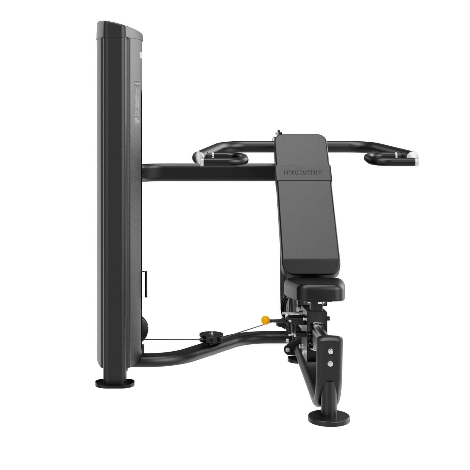 La Multi Press Machine IRONSIDE Elite reúne tres de los movimientos de empuje más importantes —press plano, inclinado y de hombros— en una sola estación compacta, sólida y ergonómica. Fabricada en acero estructural, esta máquina está pensada para entornos comerciales, estudios de entrenamiento personalizado o home gyms avanzados que buscan maximizar espacio sin sacrificar rendimiento. Su mecánica de carga guiada ofrece un movimiento fluido, directo y controlado, con una torre de 100 kg expandible hasta 125 kg, suficiente para adaptarse a distintos niveles de fuerza y progresión.