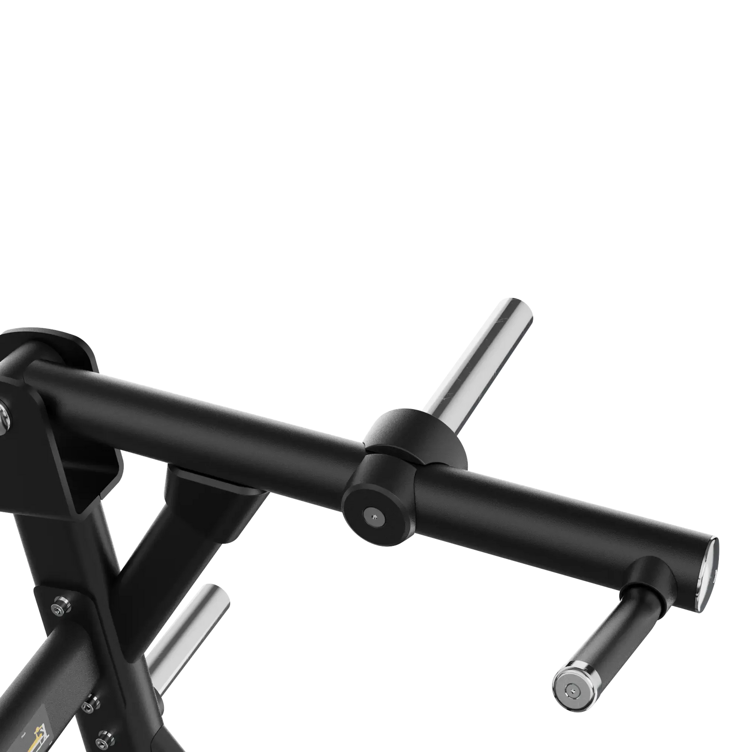 Construida con acero de calibre industrial, tapizado de alto confort y manerales antideslizantes, su diseño ergonómico asegura una ejecución biomecánicamente precisa, respetando los ángulos naturales de empuje. Con una dimensión de 190.6 × 171.3 × 96 cm y un peso total de 108 kg, está preparada para resistir cargas elevadas y un uso constante.