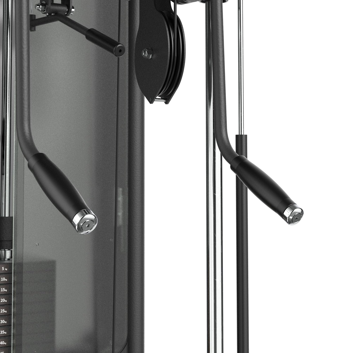 El contacto está resuelto con empuñaduras de alto agarre que admiten prono y neutro, recubrimientos que no abrasan en series largas y apoyos firmes que no ceden con el uso. Esta ergonomía permite sostener cadencia y técnica cuando el bloque exige repeticiones altas, manteniendo la intención del gesto y el enfoque en la fibra objetivo. En términos operativos, el usuario se concentra en el movimiento y no en pelear la máquina, lo que incrementa adherencia y consistencia a lo largo del ciclo.