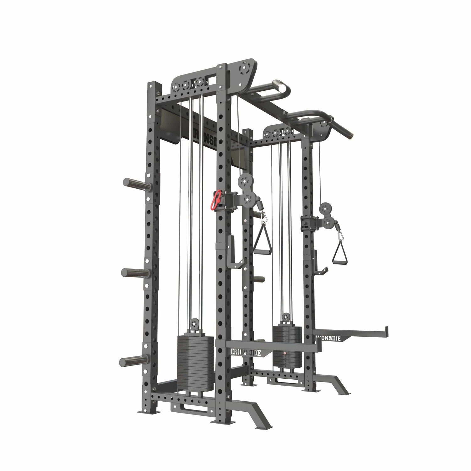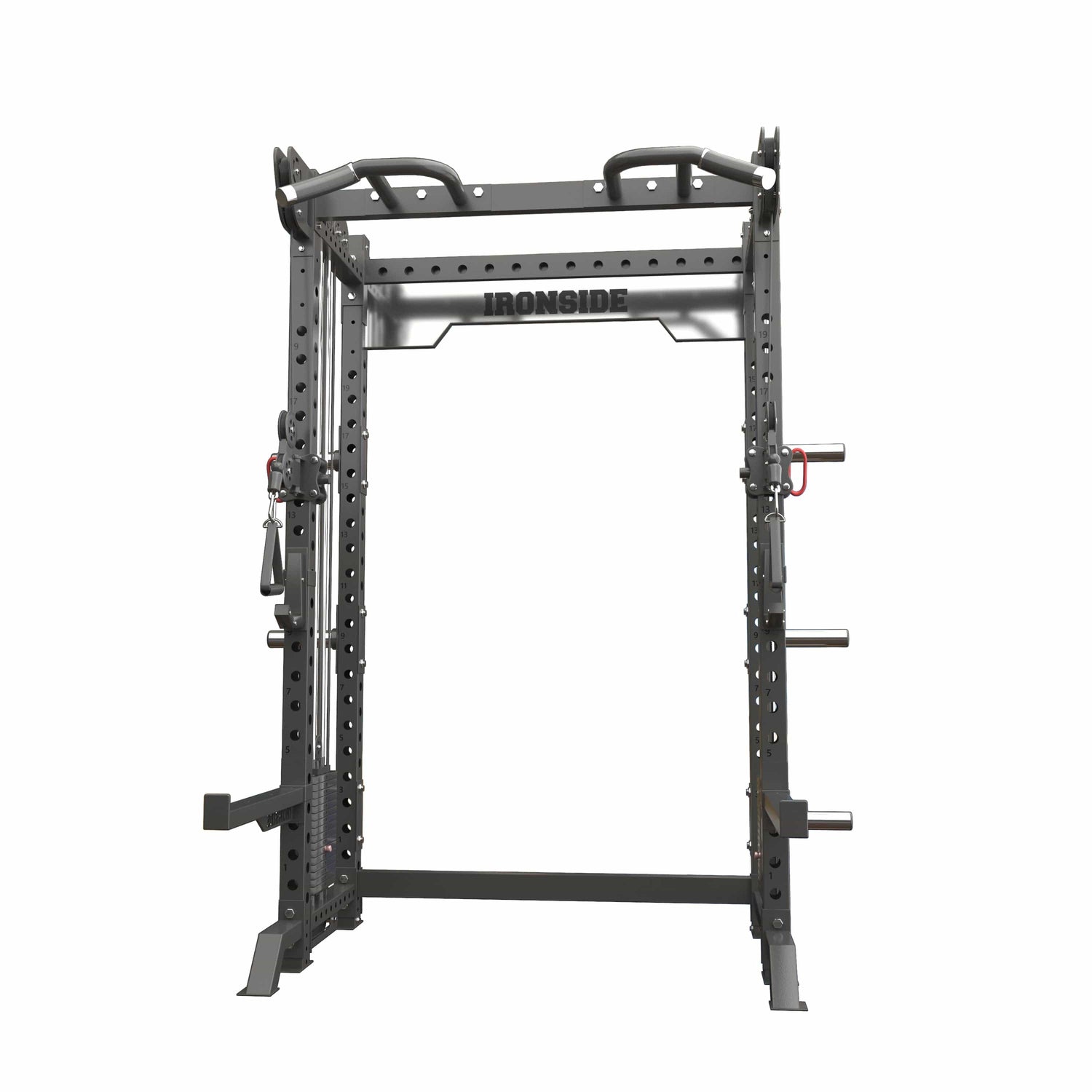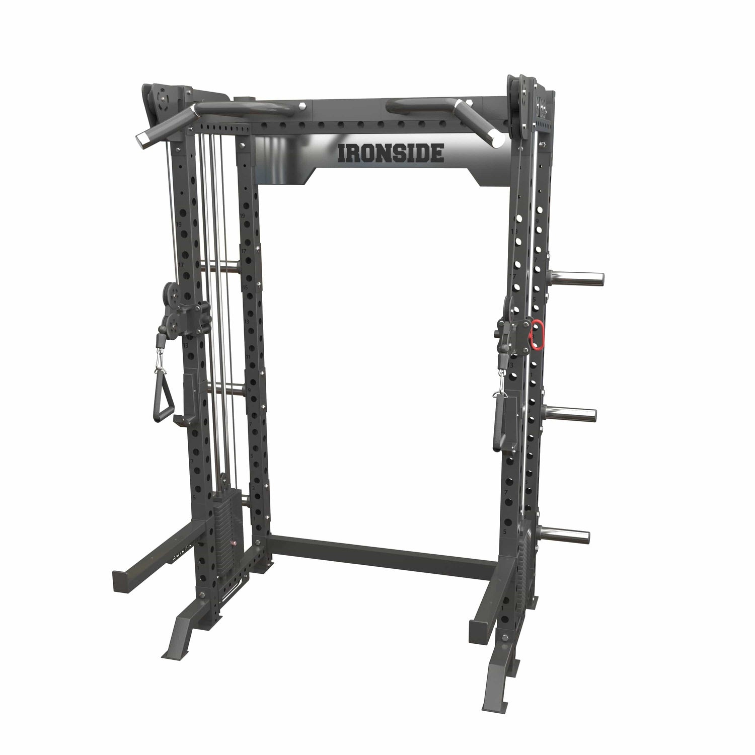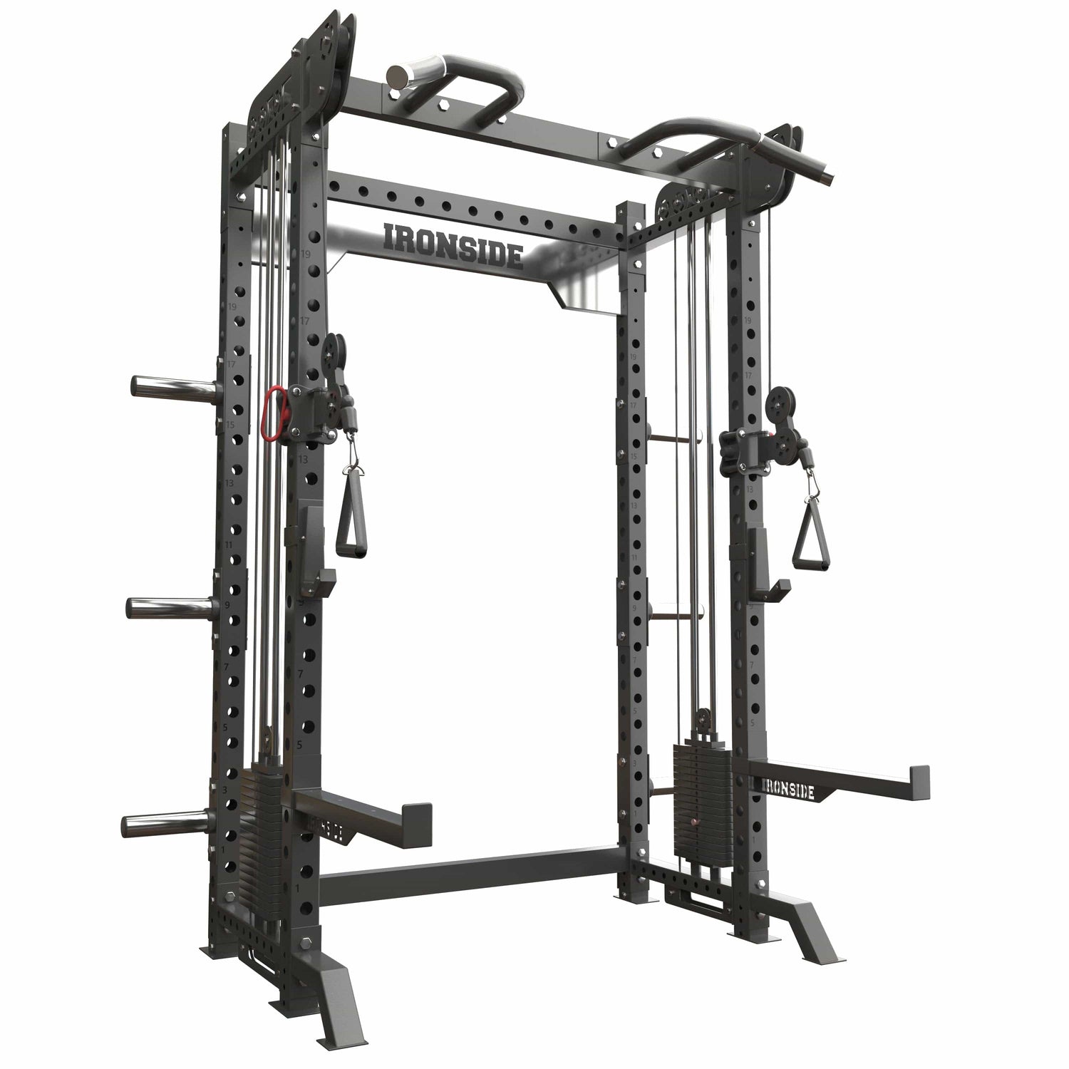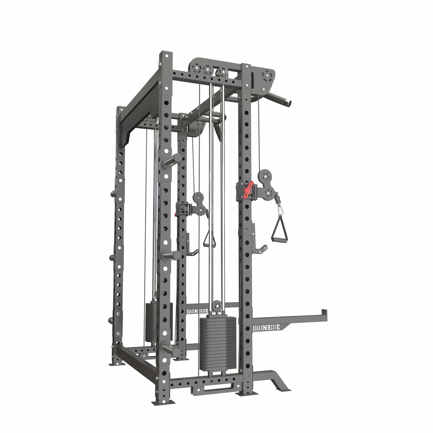 El Power Rack con Poleas IRONSIDE está concebido para quienes exigen máxima versatilidad en su rutina de fuerza. Esta jaula multifuncional integra una estructura reforzada para carga libre con barra junto a un sistema de poleas con stacks de resistencia incorporada, permitiendo alternar entre ejercicios multiarticulares pesados y trabajo de aislamiento con control. Su configuración ofrece una plataforma completa para entrenamiento de cuerpo completo, con compatibilidad total con accesorios funcionales.