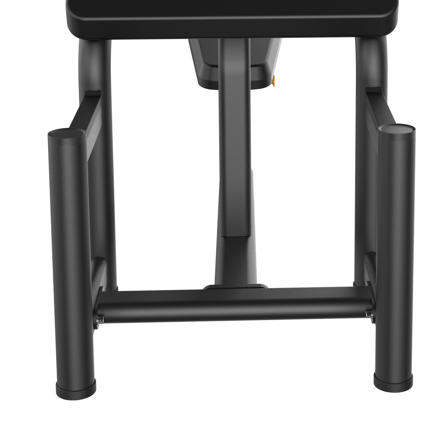 La ergonomía del banco favorece la fijación del húmero y el aislamiento del bíceps en su rango más productivo. El pad a 30° coloca el codo en una posición segura y permite iniciar el recorrido con tensión, evitando que el usuario “ayude” con la espalda cuando la serie se acerca al fallo. Esta geometría, combinada con un tapizado de alta densidad, sostiene el apoyo sin hundirse, lo que se traduce en repeticiones homogéneas y estímulo localizado.