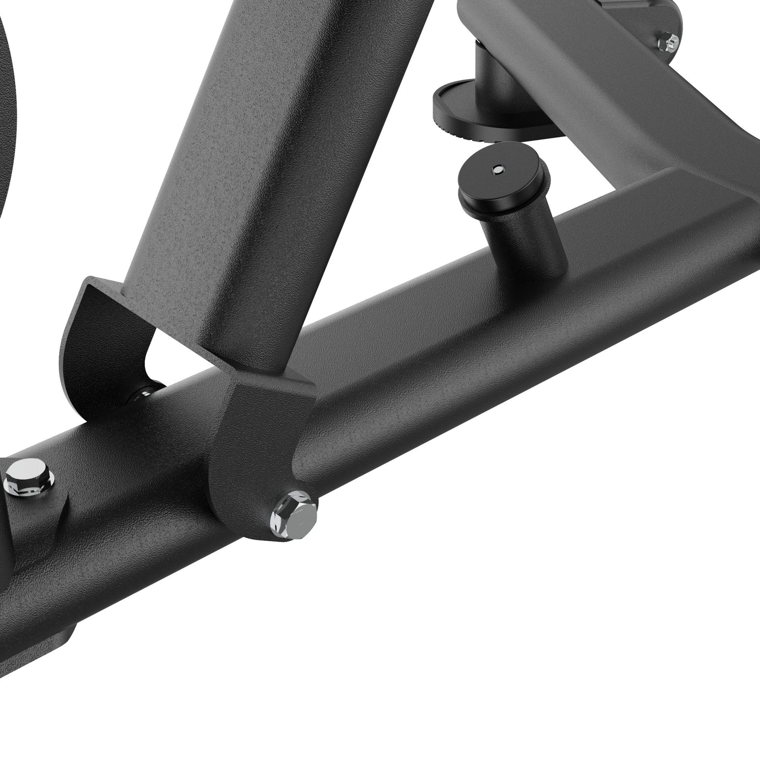 El sistema de ajuste rápido mediante pop-pin permite configurar el banco en segundos, optimizando la fluidez del entrenamiento. El respaldo cuenta con 9 posiciones de inclinación que van desde 0° hasta 75°, mientras que el asiento ofrece 4 niveles de ajuste de 0° a 18°, garantizando alineación biomecánica óptima y soporte adecuado en cualquier ángulo.