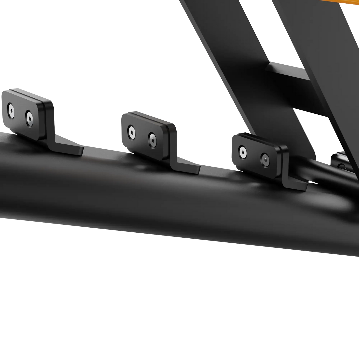 A pesar de su construcción robusta, el Banco Super FID IRONSIDE Luxe ofrece movilidad total gracias a su asa frontal y ruedas posteriores, que facilitan su reubicación dentro del área de entrenamiento. Este sistema permite reorganizar el espacio según la dinámica de trabajo o las necesidades del gimnasio sin comprometer la estabilidad del equipo.